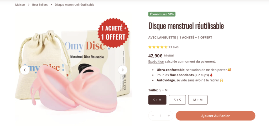- Pas la possibilité de n’acheter qu’un seul disque menstruel,