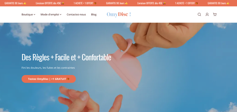 Autre point fort, OmyDisc propose une garantie de 90 jours “satisfait ou remboursé”, ce qui permet de tester le produit pendant environ 3 cycles, un avantage considérable par rapport à certaines marques concurrentes comme Femdisc ou Bamboozy qui n’en proposent pas.